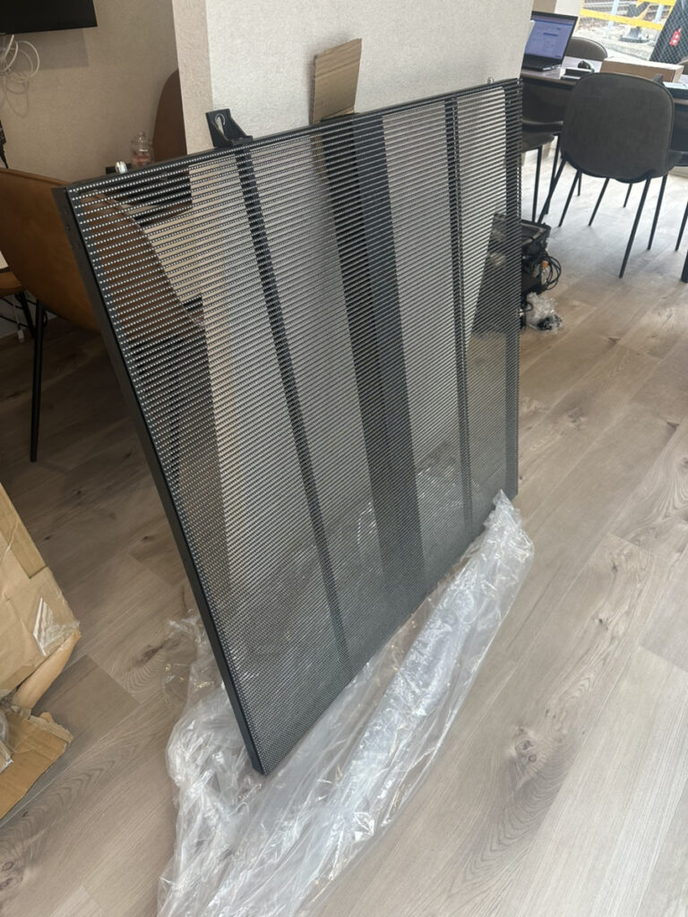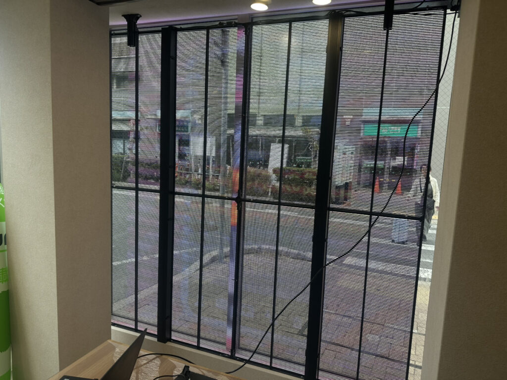 この度、某不動産会社様よりご依頼いただき、屋内用透過型LEDビジョンを導入させていただきました。