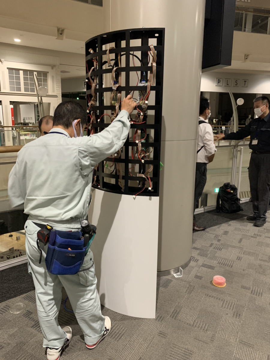 フレキシブル型のデジタルサイネージを設置することによって、建物の構造に合わせスクリーンにでき、液晶モニターよりデジタルサイネージの方が輝度が明るい為、画面が圧倒的に見やすく良くなりました。