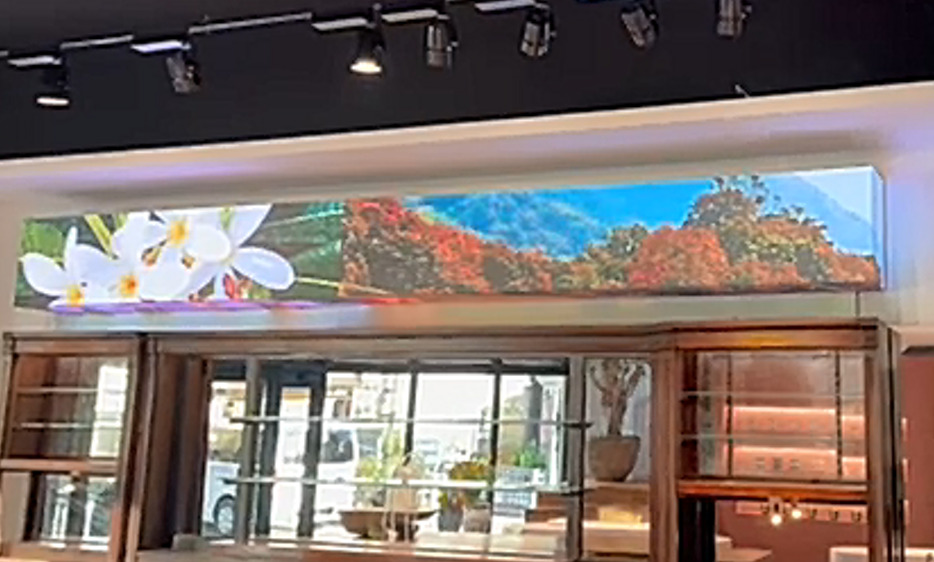PEAPデザイン株式会社様からのご依頼で、店内に4面長方形タイプのLEDビジョン、外看板に屋外用キューブ型LEDビジョンを導入いたしました。