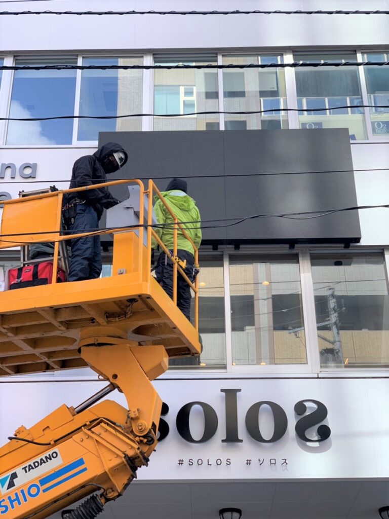 この度、solos (ソロス)様 よりご依頼いただき、屋外用大型デジタルサイネージを施工を導入させて頂きました。