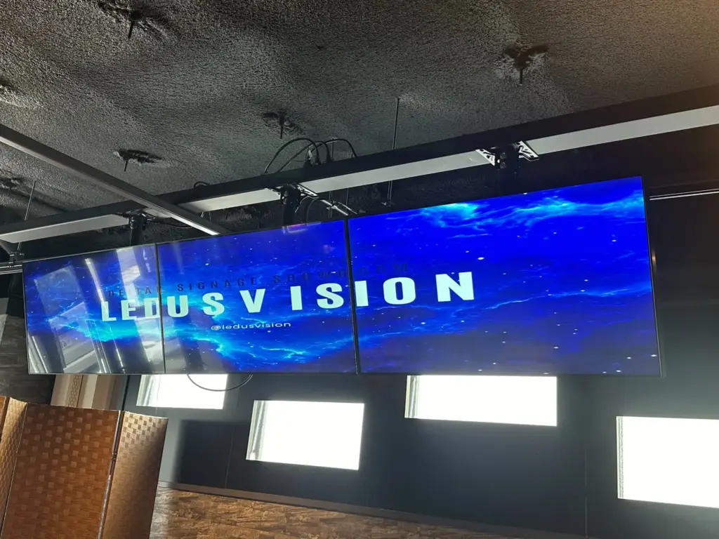 天井から吊り下げるタイプのデジタルサイネージは、設置の難易度が高く、しっかりとした設置工事が必要となります。特に安全性が重要視されるため、設置コストが高くなります。
