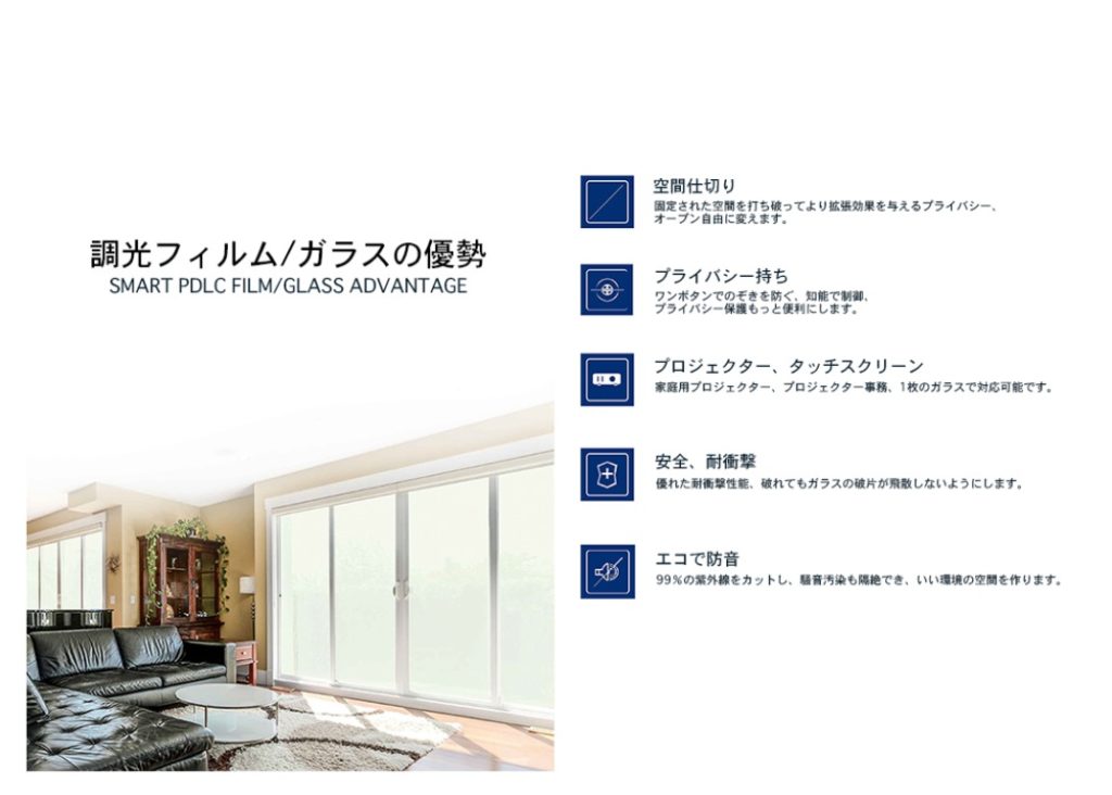 調光フィルムは、プライバシーの保護やエネルギー効率の向上に貢献する革新的な技術です。様々な場面での応用が可能であり、モダンなライフスタイルに最適な選択肢となります。