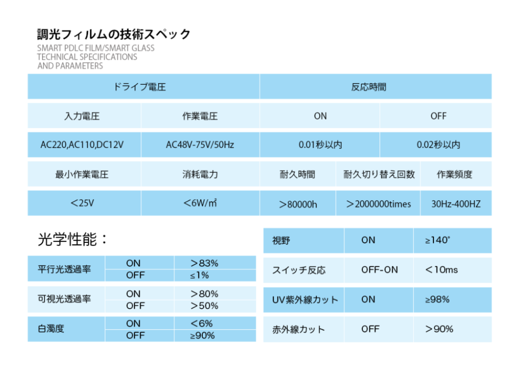 調光フィルムの詳しい価格に関しましては、お手数ですが直接お問い合わせください。