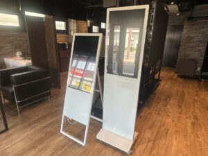 屋内用ポスター型:P2.5W640×H1750×4台/屋外屋内併用P2.61W1500×H1000/液晶イーゼル型&スタンド型32インチ【タッチ機能付】