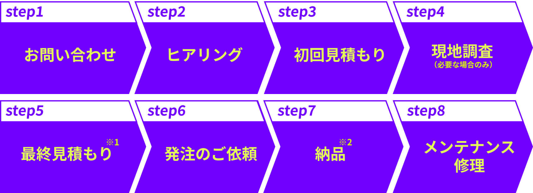 ※2 ご購入の場合は受注生産となりますので、45〜60日ほどお時間を頂きます。レンタルの場合はエリアや施工規模により、最短翌日のご対応も可能です。