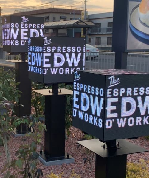は最適です。弊社での設置も9割は屋外の外壁に付ける方が多く、映像もブランドロゴや文字でのPRをしブランド認知度を高め集客力を強化できます。