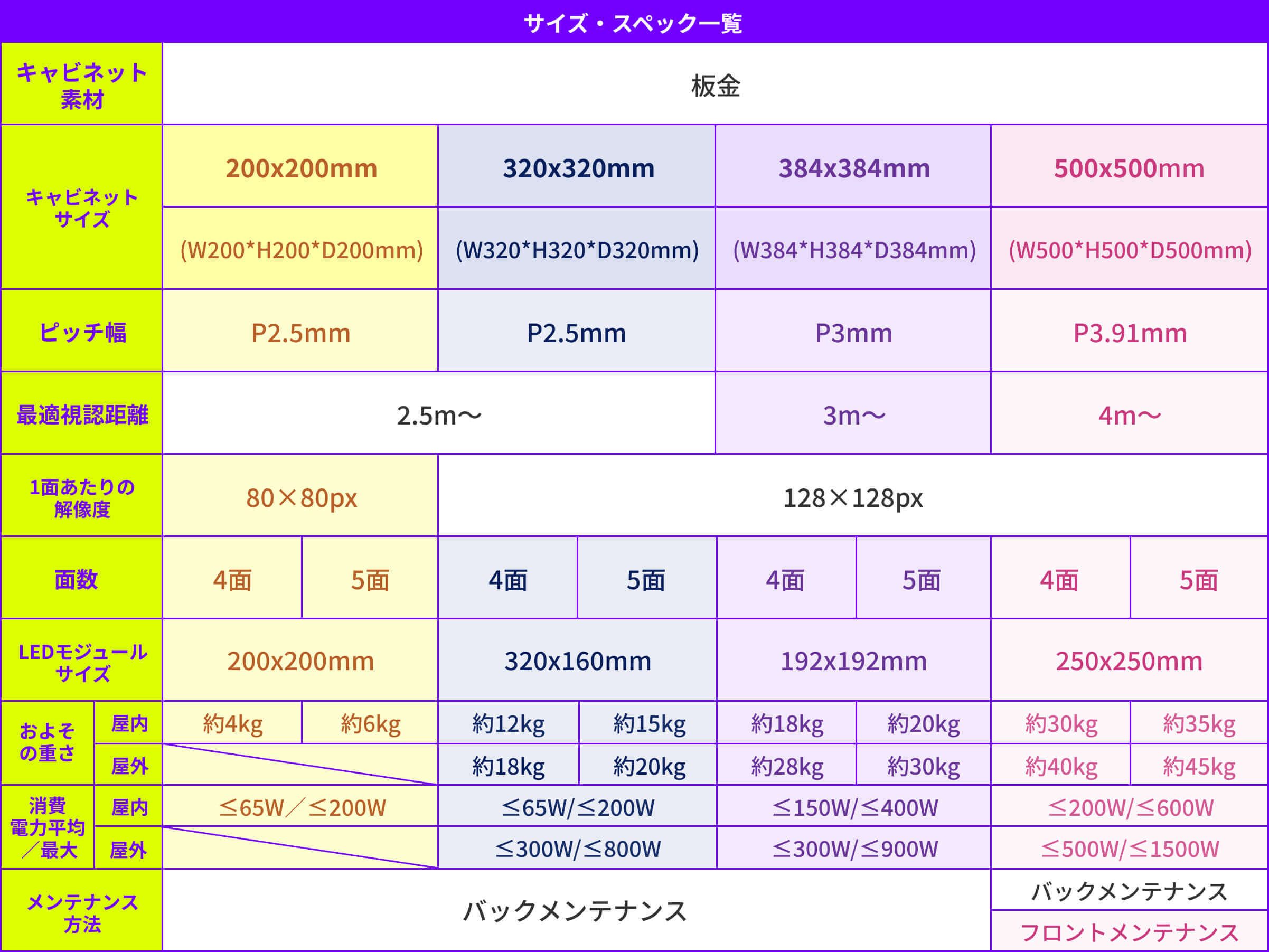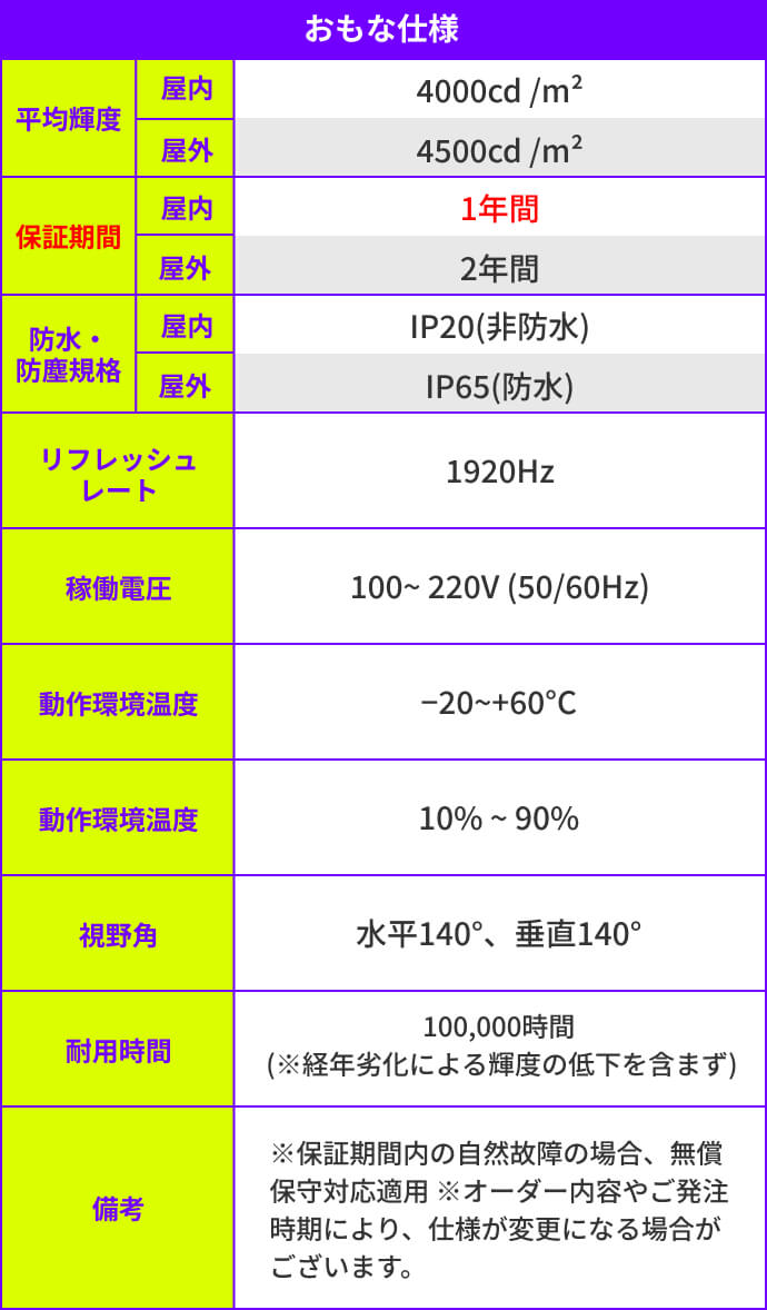 屋外/屋内ともに2.5mmピッチの高精細LEDビジョン仕様。